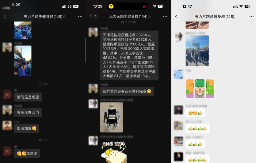 2024 年10月20日上午7:30,天津马拉松大赛正式开赛。大赛吸引了来自全世界各地的众多跑者参与。天津马拉松项目报名 33764人,半程马拉松项目报名 62528 人、健康跑项目报名 25009人。除了天津选手之外,还有来自外省市、港澳台和外籍选手。赛道上,选手们奋力奔跑的身影,构成了一道亮丽的风景线。