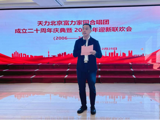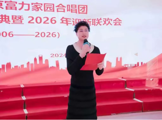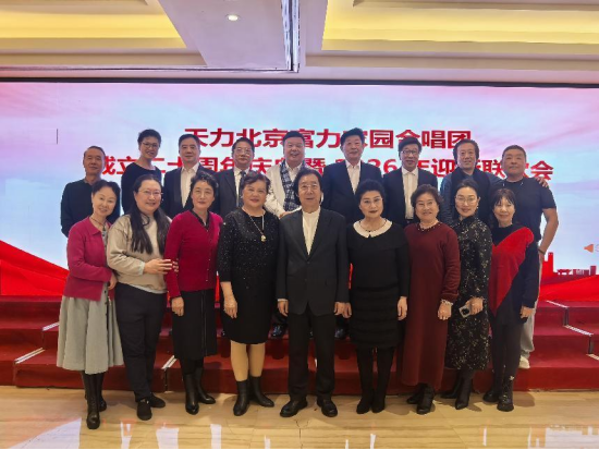 12月25日,北京市朝阳区双井轩内歌声悠扬,气氛热烈。天力北京富力家园合唱团成立二十周年庆典暨2026年迎新联欢会在此举行。著名指挥家、北京合唱协会理事长王瑞璞,著名作曲家戚建波,与来自北京各兄弟合唱团的代表、嘉宾以及全体团员共140余人欢聚一堂,共庆华诞。